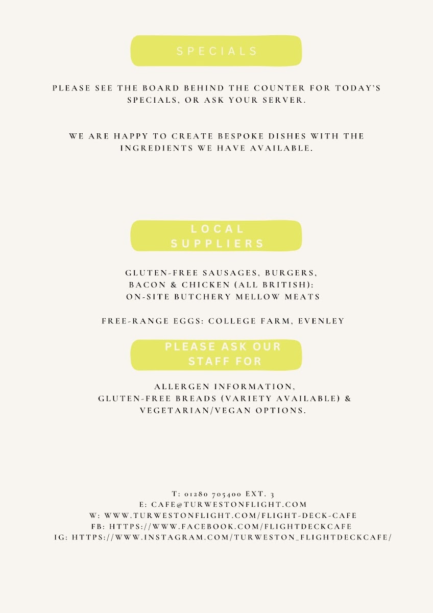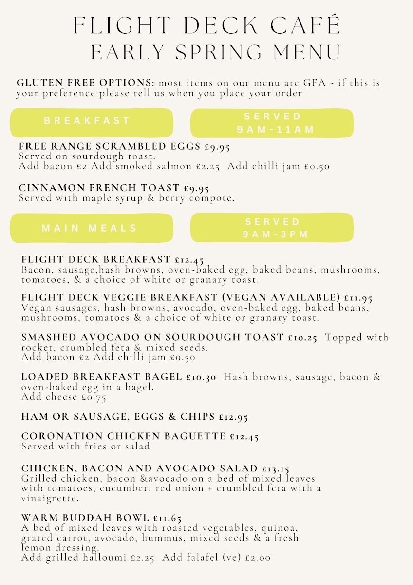 Welcome to The Flight Deck Cafe, your culinary destination nestled within the scenic Turweston Aerodrome in Brackley, UK. This cafe not only offers a delightful dining experience but also breathtaking views of the aircraft in action. The menu showcases a blend of hearty and healthy options, making it ideal for both air travelers and land visitors alike.